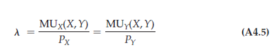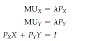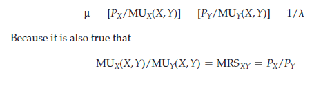 By solving the first two equations, and recalling (A4.5), we see that p = [Px/MUx(X, Y)] = [Py/MUy(X, Y)] = 1/1 Because it is also true that