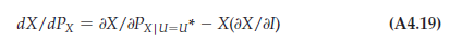 Suppose for the moment that the consumer owned goods X and Y. In that case, equation (A4.18) would tell us that when the price of good X increases by $1, the amount of income that the consumer can obtain by selling the good increases by $X. In our theory of consumer behavior, however, the consumer does not own the good. As a result, equation (A4.18) tells us how much additional income the consumer would need in order to be as well off after the price change as he or she was before. For this reason, it is customary to write the income effect as negative (reflecting a loss of purchasing power) rather than as a positive. Equation (A4.17) then appears as follows:
