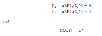 Here, U( ) is the utility function, X and Y the quantities of the two goods purchased, PX and PY the prices of the goods, and I income.[1]