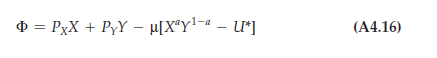To see how the dual approach works, let’s reconsider our Cobb-Douglas example. The algebra is somewhat easier to follow if we use the exponential form of the Cobb-Douglas utility function, U(X, Y) = XY – a. In this case, the Lagrangian is given by