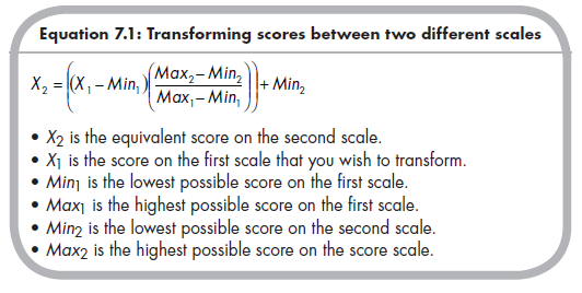 A caution in using different scales is that even if both studies use a common range of scores (e.g., 0-4), it is probably only meaningful to combine and compare means if the studies used the same anchor points (e.g., if one used response options of never, rarely, sometimes, often, and always, whereas the other used 0 times, once, 2-3 times, 4-6 times, and 7 or more times, it would make little sense to combine or compare these studies). This may prove an especially difficult obstacle if you are attempting to combine multiple scales in which scores from one scale are transformed to scores of another using Equation 7.1. This requirement of primary studies reporting the variable on the same—or at least a comparable—metric means that you will often include only studies using the same measure (e.g., a particular measure of depression, such as the Children’s Depression Inventory; Kovacs, 1992) or else very similar measures (e.g., child- and teacher-reported aggression using parallel items and response options). I suspect that this rather restrictive requirement is the primary reason why meta-analysis of means is not more common. If you are using different but similar measures, or transformations to place values of different measures on a common scale, I highly recommend evaluating the measure as a moderator (see Chapter 9).