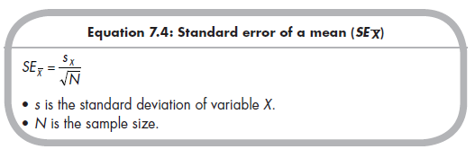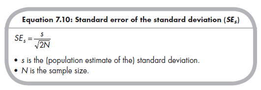 The standard error of a variance estimate, as you might expect, is simply Equation 7.10 squared (i.e., SEs2 = s 2/2N)