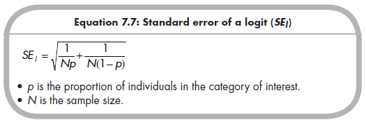 This logit has the following standard error dependent on the proportion (p) and sample size (N) (Lipsey & Wilson, 2001, p. 40):