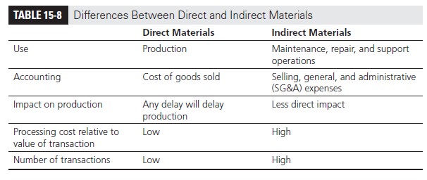 The tailoring of the supplier portfolio should also account for other characteristics of the product being sourced. A simple categorization of purchased goods is into direct and indirect materials. Direct materials are components used to make finished goods. For example, the processor is a direct material for a smartphone manufacturer. Indirect materials are goods used to support the operations of a firm. Office supplies are examples of indirect materials for an automotive manufacturer. Important differences between direct and indirect materials are shown in Table 15-8.
