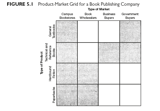 A critical step in sales job analysis is to define the nature of product-market interactions. It is advisable to construct a product-market grid (see Figure 5.1). Companies using product-market grids, of course, construct them showing much finer details of product-market interactions than that illustrated; this demands thorough analysis and classification of markets and products. The “boxes” indicate the different customers who might be sold the different products. As management decides which customers should be sold which products, some boxes are blacked in, others left empty. This helps to answer the question: Should our sales personnel be product specialists, iparket specialists, or a combination? Product specialization is indicated when the product is highly technical, requiring salespeople to advise on uses and applications. Market specialization is called for when the product is nontechnical but different kinds of customers have unique buying problems, require special sales approaches, or need special service. In many cases, analysis reveals that sales personnel need not only considerable knowledge of more than a single company product line and their applications but skills in dealing with more than one kind of customer.