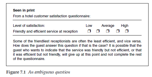 Unless they are mutually exclusive, it will be possible to code the same response against more than one response code. This is confusing for the interviewer (or respondent with a self-completion questionnaire) and makes the output ambiguous and impossible to interpret (see Figure 7.1).