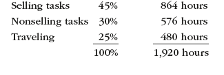 - Divide the total work time available per salesperson by task. As sume that management specifies that sales personnel should apportion their time as follows:
