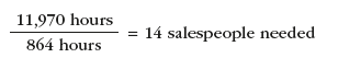 - Calculate the total number of salespeople needed. This is a matter of dividing the total market work load by the total selling time available per sales person: