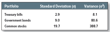 As expected, Treasury bills were the least variable security, and common stocks were the most variable. Government bonds hold the middle ground.