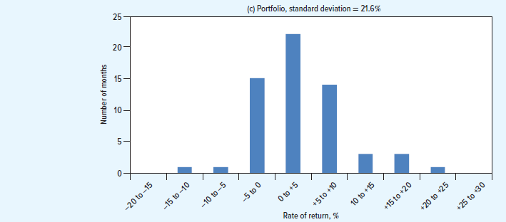 Another way to present these data is by a histogram or frequency distribution. This is done in Figure 7.6, where the variability of year-to-year returns shows up in the wide “spread” of outcomes.