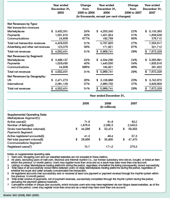 Advertising and other net revenues represented 4% of total net revenues during 2007. This case focuses on the best-known eBay business, the eBay marketplace.