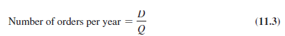 The number of orders must suffice to meet the annual demand D. Given a lot size of Q, we thus have