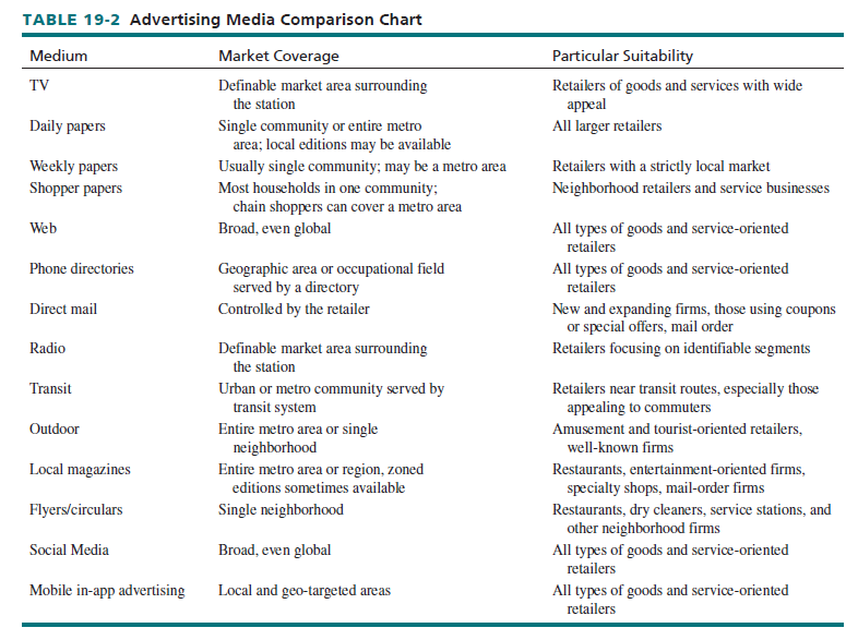 MEDIA Retailers can choose from the media highlighted in Table 19-2 and described here.