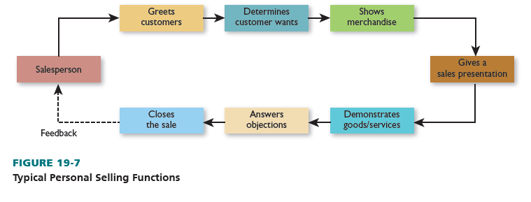 FUNCTIONS Store sales personnel may be responsible for all or many of the tasks shown in Figure 19-7 and described next. Nonstore sales personnel may also have to generate customer leads (by knocking on doors in residential areas or calling people who are listed in a local phone directory).