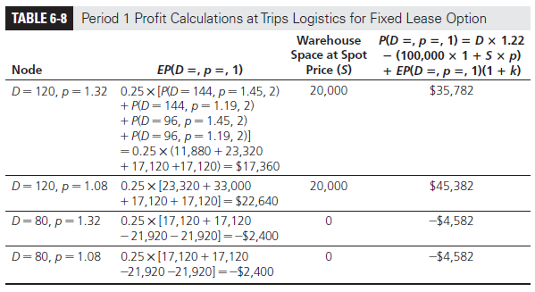The profit for Trips Logistics at each of the other nodes in Period 2 is evaluated similarly, as shown in Table 6-5.