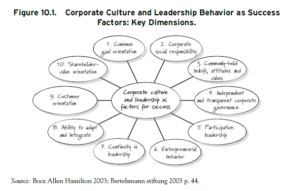 individual models of excellence in developing and living a corporate culture . . . An international working commission composed of experts from academia and the business world developed ten critical dimensions of corporate culture in intense discussion . . . Then a team of researchers from Bertelsman Stiftung and the consulting firm of Booz Allen Hamilton evaluated these companies against the ten dimensions and their related criteria. (Sackman, Bertelsman Stiftung, 2006, p. 43)
