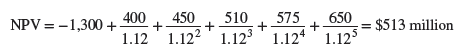 These cash flows are stated in dollars. So to calculate their net present value Roche discounts them at the dollar cost of capital. (Remember dollars need to be discounted at a dollar rate, not the Swiss franc rate.) Suppose this cost of capital is 12%. Then