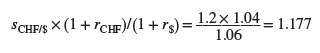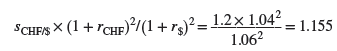 We need first to calculate the forward rate of exchange between dollars and francs. This depends on the interest rates in the United States and Switzerland. For example, suppose that the dollar interest rate is 6% and the Swiss franc interest rate is 4%. Then interest rate parity theory tells us that the one-year forward exchange rate is