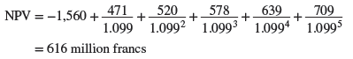 All that remains is to discount the Swiss franc cash flows at the 9.9% risk-adjusted discount rate: