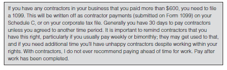 If you are paying a contractor, the rules are easier and the hassles lessen. You simply get an invoice from the contractor; be sure you have his or her Social Security number and current address on file, and submit a 1099-MISC form at the end of the year. The box for nonemployee compensation is what you complete for payments to contractors. Contractors are required to pay their own taxes, relieving you of the burden of calculating withholdings and sending W2s at the end of the year. Several online companies make 1099 submissions easier.