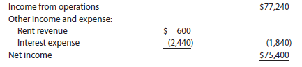 Other income and other expense are offset against each other on the income statement. If the total of other income exceeds the total of other expense, the difference is added to income from operations to determine net income. If the reverse is true, the difference is subtracted from income from operations. The other income and expense items of NetSolutions are reported as shown below and in Exhibit 8.