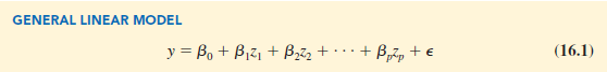 In equation (16.1), each of the independent variables Zj (where j = 1, 2, . . . , p) is a function of x1, x2, . . . , xk (the variables for which data are collected). In some cases, each Zj may be a function of only one x variable. The simplest case is when we collect data for just one variable x1 and want to predict y by using a straight-line relationship. In this case z1 = x1 and equation (16.1) becomes