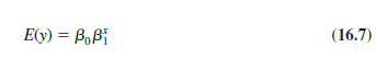 Now if we let y’ = ln E( y), β’0 = ln β0, and β’1 = ln β1, we can rewrite equation (16.8) as