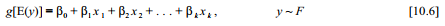 where g[ ] is the link function and F the distribution family. This general formulation encompasses many specific models. For example, if g[ ] is the identity function and y follows a normal (Gaussian) distribution, we have a linear regression model: