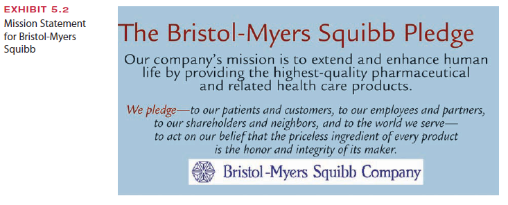 Mission statements such as those of Bristol-Myers Squibb and State Farm let employees, as well as customers, suppliers, and stockholders, know the company’s stated purpose and values.