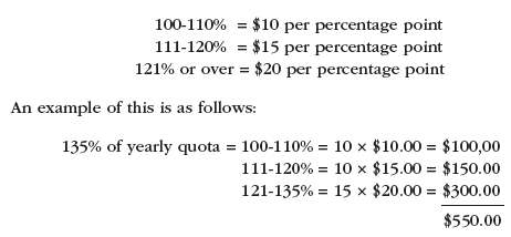- 121% and over of quota = $60 per percentage point.