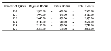 As an additional incentive, we are making an extra bonus available to those who exceed 100 percent of their quota. The payoff for this extra bonus will be
