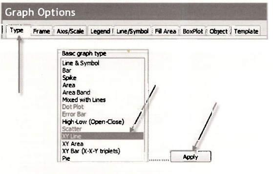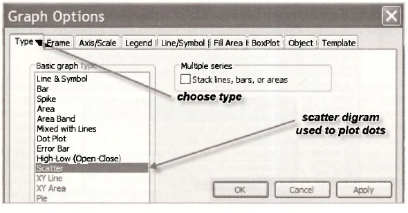 Then select Line/Symbol. The snapshot below shows you how you change the line for FOOD EXP to dots (symbols). No changes are needed for series #2, FOODHAT. It is already represented by the required line. Click Apply. Click OK.