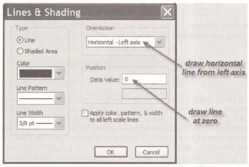 A nice looking scatter plot will appear. You can make it look even nicer by drawing a horizontal line at zero. Select Line/Shade.