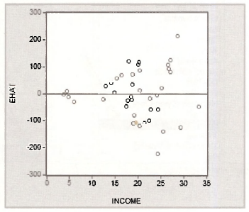 Clicking OK gives the required graph. Notice how the absolute magnitude of the residuals is larger for larger values of income, an indication of heteroskedasticity.