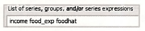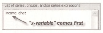 The relevant three variables for the graph are INCOME, FOOD EXP and FOODHAT, with FOODHAT being required to draw the least-squares estimated line. The x-axis variable INCOME is listed first.