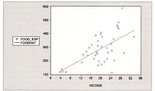 In this chapter we return to the example considered in Chapters 2 to 4 where weekly expenditure on food was related to income. Data in the file food.wfl were used to find the following least squares estimates.
