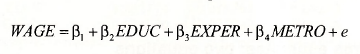We are hypothesizing that WAGE depends on education (EDUC), experience (EXPER), and whether a worker lives in a metropolitan area ( METRO = 1 for metropolitan area, METRO = 0 for rural area). Three sets of estimates are obtained: (1) a least-squares regression on all observations, (2) two separate least-squares regressions, one for metropolitan workers and one for rural workers, and (3) a generalized least-squares regression that uses all observations, but which assumes the error variances for metropolitan and rural workers are different. This latter assumption is referred to as a “heteroskedastic partition”.