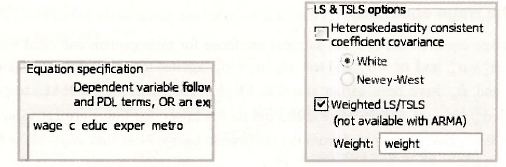 Weighted least squares is another Equation Estimation option, so our starting point is the same as that for the White standard errors, namely
