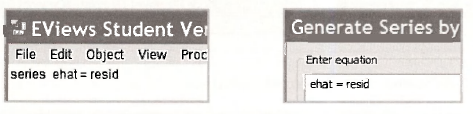 Now consider the two options. If you click LOG(EHATˆ2), EViews will give you the forecasts qi = In(σ2i). If you click EHAT, it will invert the transformation given in the Equation specification and give you the forecasts σi = √exp(qi) . Since it is σi, that is needed to transform the variables in the generalized least squares procedure, we choose EHAT. We call the forecast series SIGHAT.