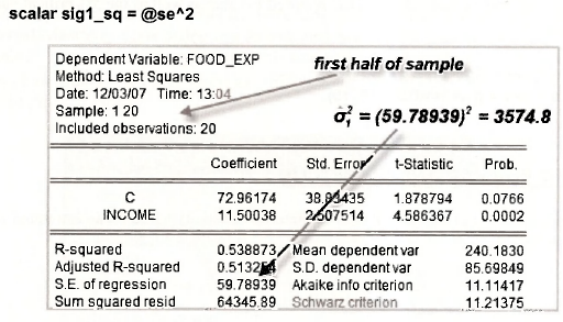 The value σ21 is obtained by squaring the value of S.E. of regression in the resulting output. We give it the name SIG1_SQ.