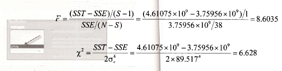 For the wage equation the two sub-samples are those for metropolitan and rural workers. Thus, we write σ22 = σ2M and σ21 = σ2R and test H0: σ2R = σ2M against the alternative H1 :σ2R # σ2M . Given that σR and σM have been earlier saved as SE_METRO and SE_RURAL, respectively, the value F = σ2M/σ2R =31.824/15.243 = 2.09, and its 5% upper and lower critical values FUc =1.26 and FLc = 0.81, can be computed from the commands below. Note that NM – KM = 805 and that NR-KR=189.
