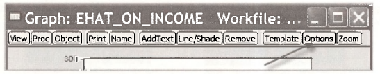 Double clicking on this object will open it. Be careful, however. It may not look like you expected! Unless told otherwise, EViews will assume you want both INCOME and EHAT graphed against the observation number. You need to tell EViews to change the graph so that INCOME is on the x-axis and EHA T is on the y-axis. Also, given that income is not measured in equally spaced intervals, dots are preferred to a line graph. With these factors in mind, open the graph and select Options.
