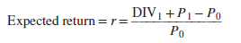 Today’s Price If you own a share of common stock, your cash payoff comes in two forms: (1) cash dividends and (2) capital gains or losses. Suppose that the current price of a share is P0, that the expected price at the end of a year is P1, and that the expected dividend per share is DIV1. The rate of return that investors expect from this share over the next year is defined as the expected dividend per share DIV1 plus the expected price appreciation per share P1 – P0, all divided by the price at the start of the year P0: