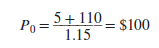For Fledgling Electronics, DIV1 = 5 and P1 = 110. If r, the expected return for Fledgling is 15%, then today’s price should be $100:
