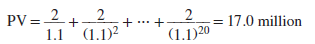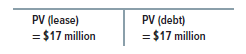 Potterton Leasing has acquired a warehouse and leased it to a manufacturer for fixed payments of $2 million per year for 20 years. The lease cannot be canceled by the manufacturer, so Potterton has a safe, debt-equivalent asset. The interest rate is 10%, and we ignore taxes for simplicity. The PV of Potterton’s rental income is $17 million: