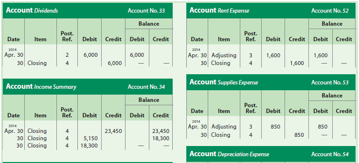 The closing entries are normally identified in the ledger as “Closing.” In addition, a line is often inserted in both balance columns after a closing entry is posted. This separates next period’s revenue, expense, and dividend transactions from those of the current period.