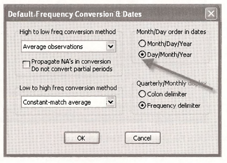 - Weekly and daily: by default, you should specify these dates as Month/Day/Year. Thus August 15, 2007 is 8/15/2007. However, you can easily change this to day/month/year using Options/Dates & Frequency Conversion.