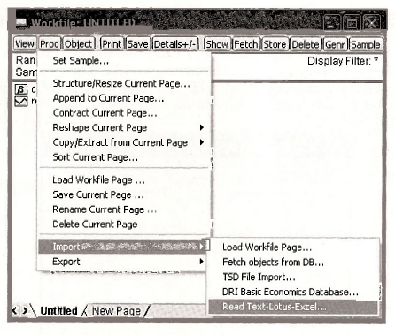 To import data, click on File/Import/Read Text-Lotus-Excel.