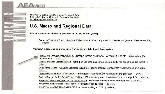 Suppose you are interested in analyzing the GDP of the United States. As suggested in Chapter 17, the website Resources for Economists contains a wide variety of data, and in particular the macro data we seek.