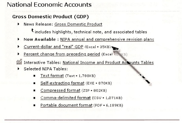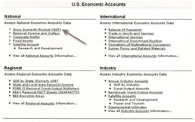 From the screen below, select the Gross Domestic Product (GDP) option.